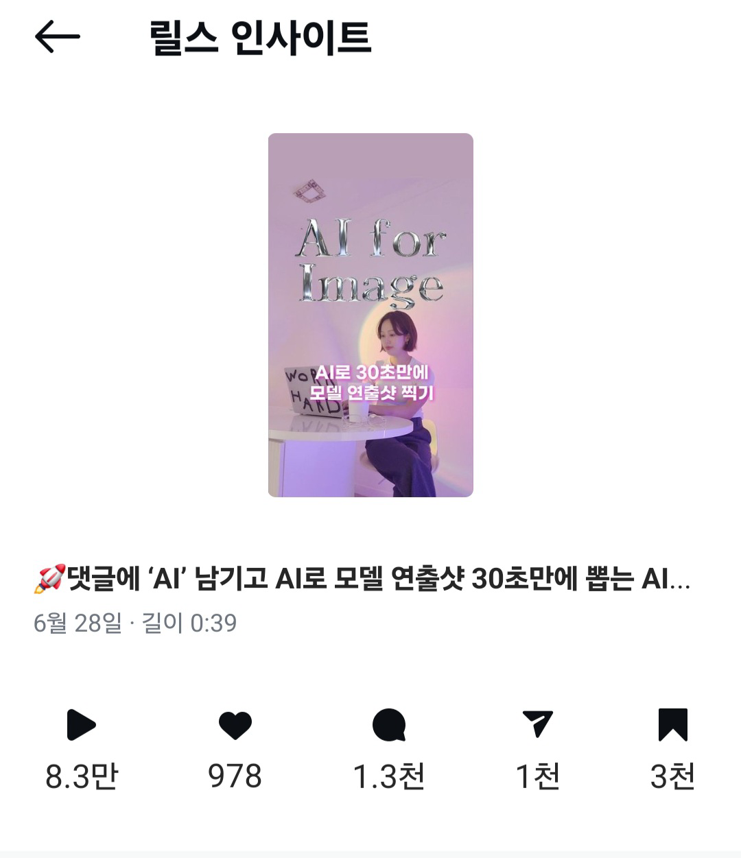 비즈니스에 AI 적용하는 콘텐츠에 한 릴스에 저장만 3천, 공유 1천, 댓글이 1.3천까지 찍길래 깜짝 놀랐습니다.
