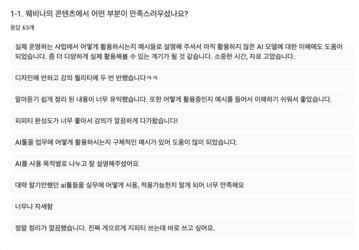 특히 웨비나 강의 자료에 대한 칭찬이 쏟아졌습니다.