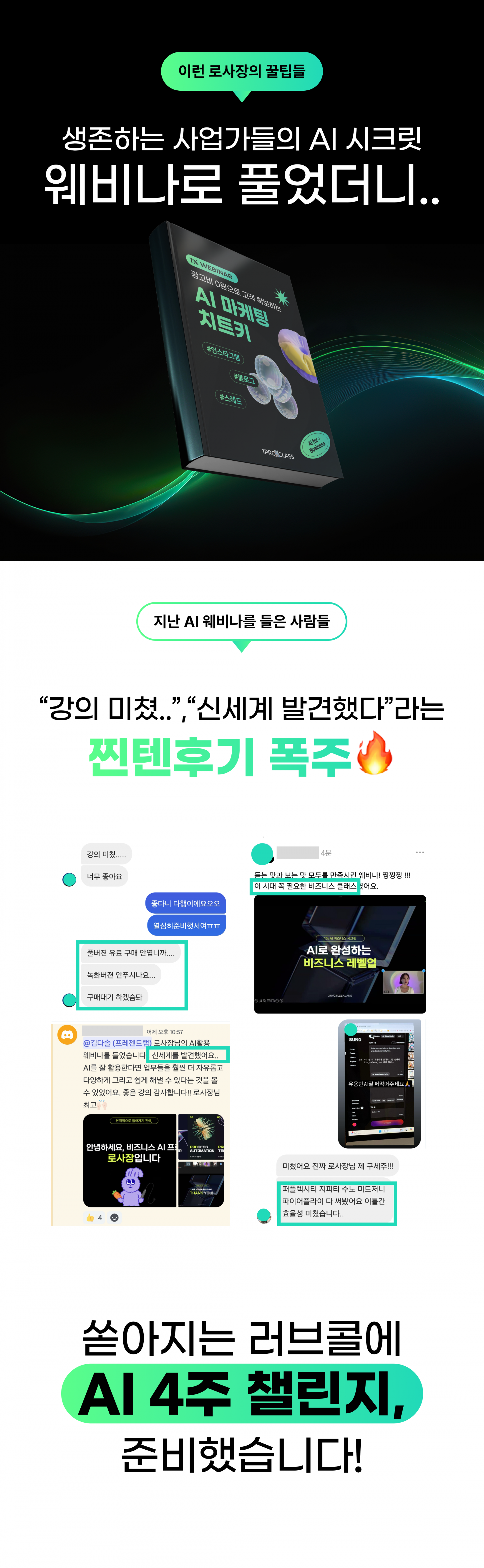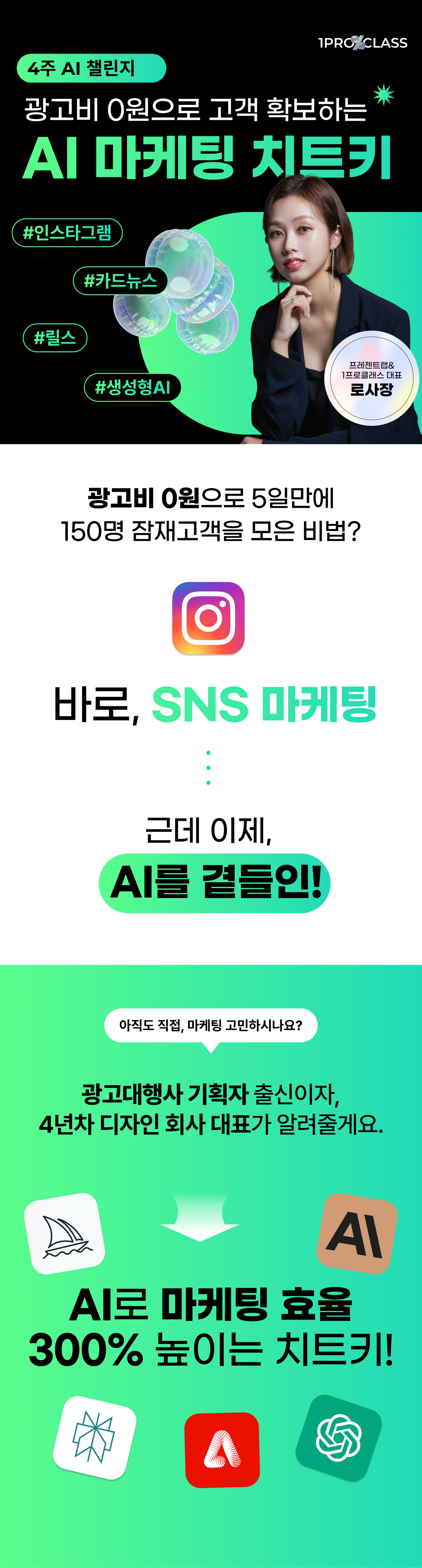 | 2주차 | AI로 인스타그램 콘텐츠 전략세우기 | 11월 13일 (수) 저녁 9시~ |