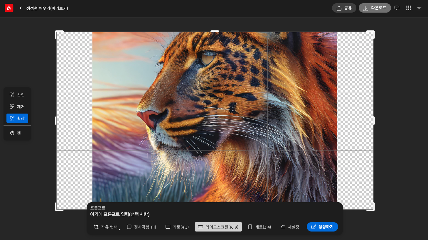 이미지를 내가 원하는 비율로 확장시키고 싶을때 파이어플라이를 아~~주 유용하게 써먹을 수 있죠.