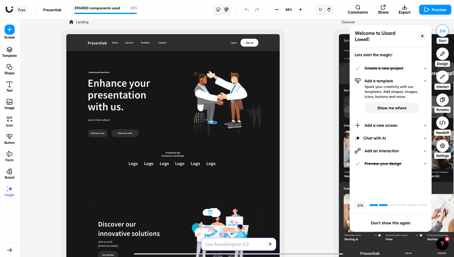 무료 웹사이트 AI: 유아이자드 (UIZARD)