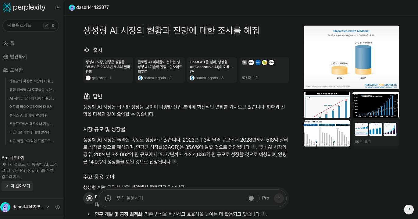 특히 퍼플렉시티는 시장조사나 데이터를 물어봤을 때, 논문이나 기사를 출처로 정확한 정보를 잘 찾아줍니다.