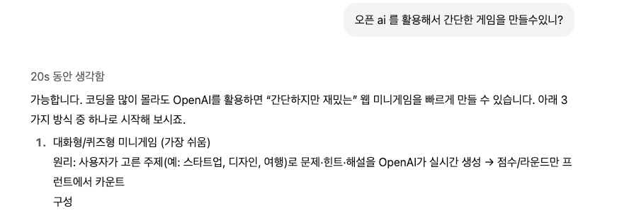 1. GPT-5 에게 간단한 미니 게임을 만들고 싶다고 요청