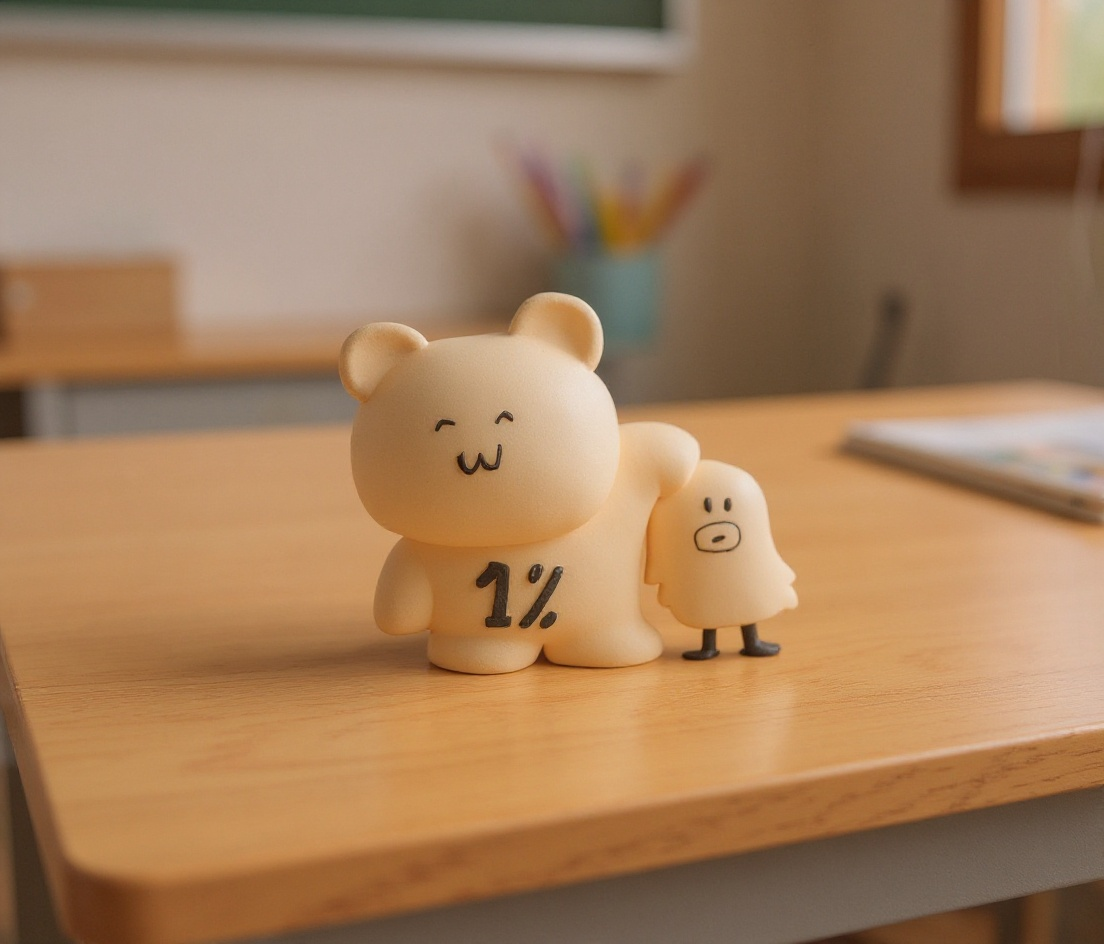 💬 " 첨부된 그림을 초등학교 교실 책상 위에 올려진 3D 피규어로 만들어줘"