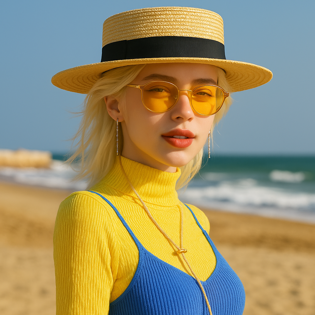 왼쪽은 제가 미드저니로 생성한 아름다운 외국인 모델! 오른쪽은 구찌의 짚신 모자 사진입니다.