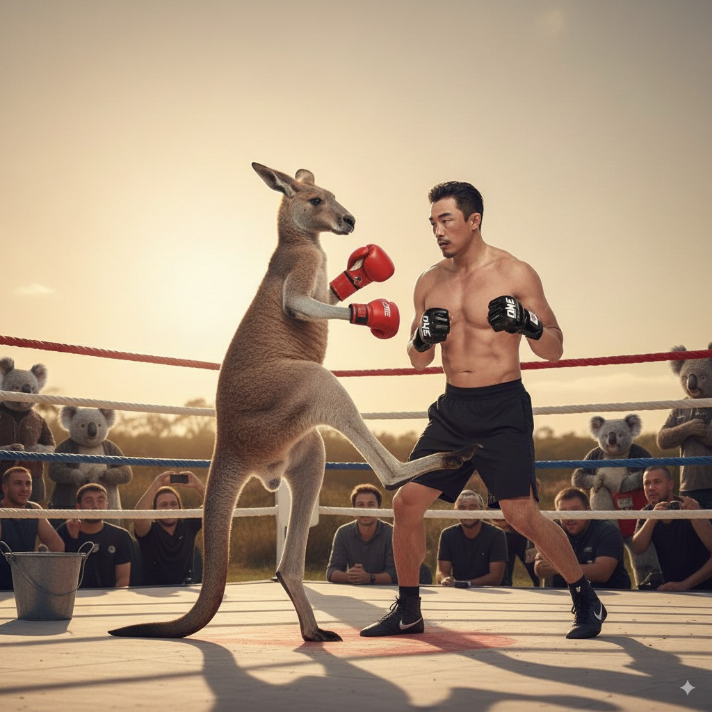💬 " 남자가 캥거루와 복싱대결을 하는 사진을 만들어줘"