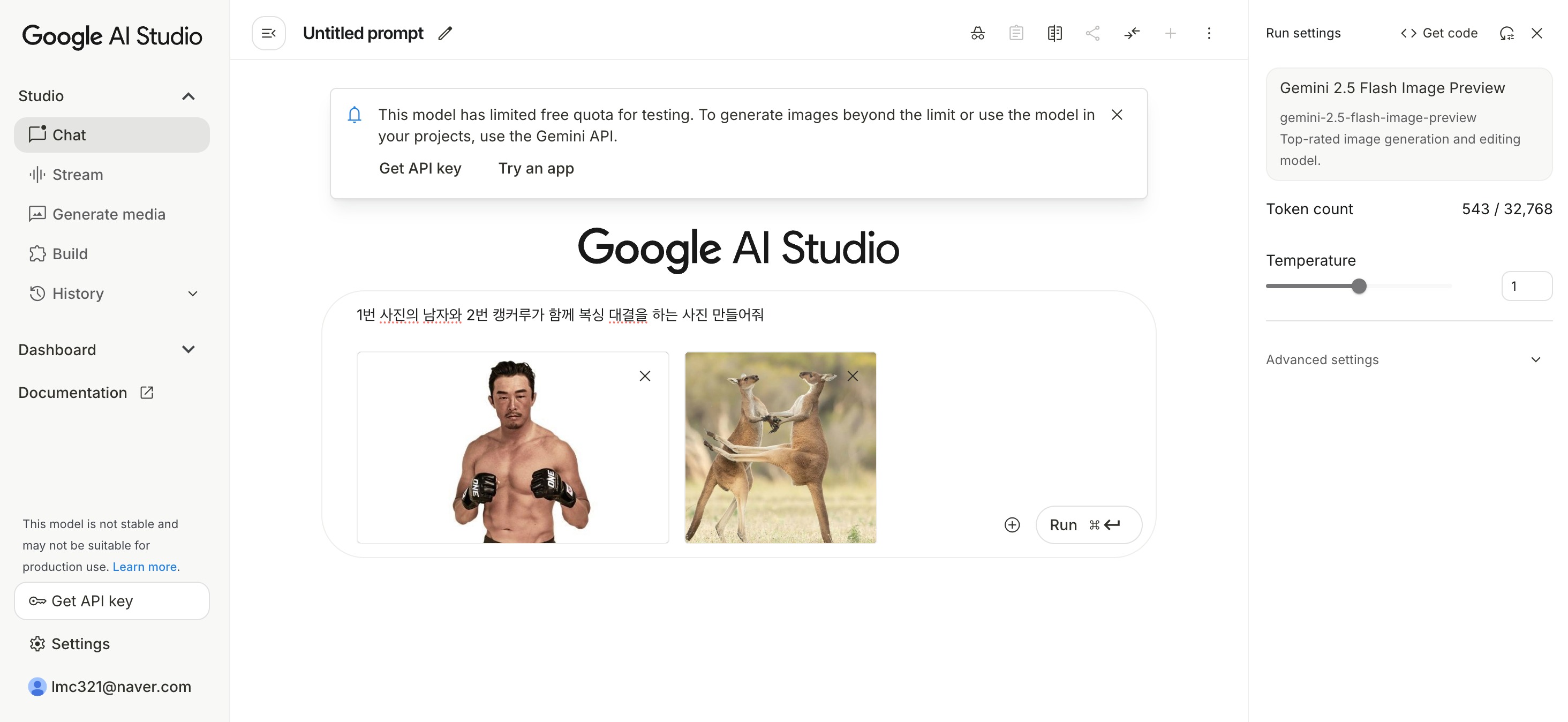 이번엔 나노바나나의 공식 런칭된 구글 Gemini 2.5 플래시를 이용해서 이미지를 만들어볼게요! 아저씨 추성훈과 호주 캥거루가 격투하는 장면, 궁금하지않나요? 당장 만들어보죠 ㅎㅎ