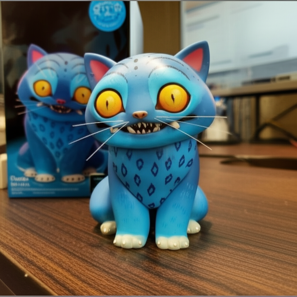 💬 " 이 사진을 컴퓨터 책상에 놓여있는 피규어로 만들어줘! 피규어 박스도 배경에 있으면 좋겠어"