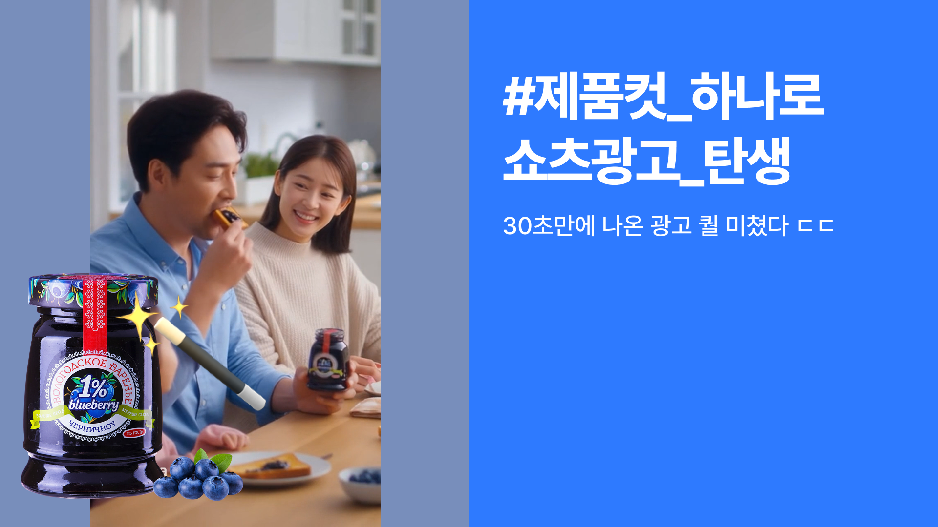 📝 "가족들이 함께 잼을 빵에 발라먹는 광고를 만들어줘"