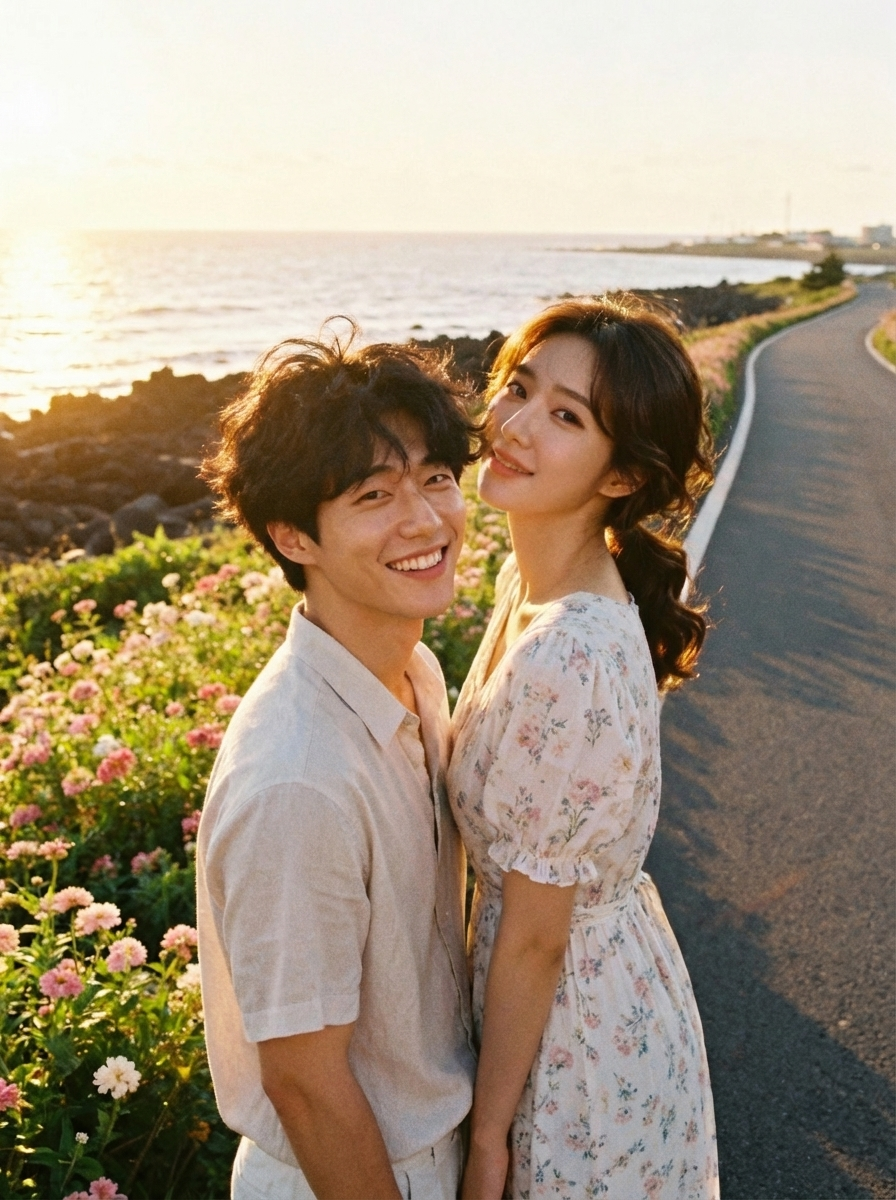 실제 카메라인 것처럼 초점을 자유롭게 조절할 수 있다길래, 예시로 선남선녀 AI 커플 사진을 한 장 가져와봤습니다!