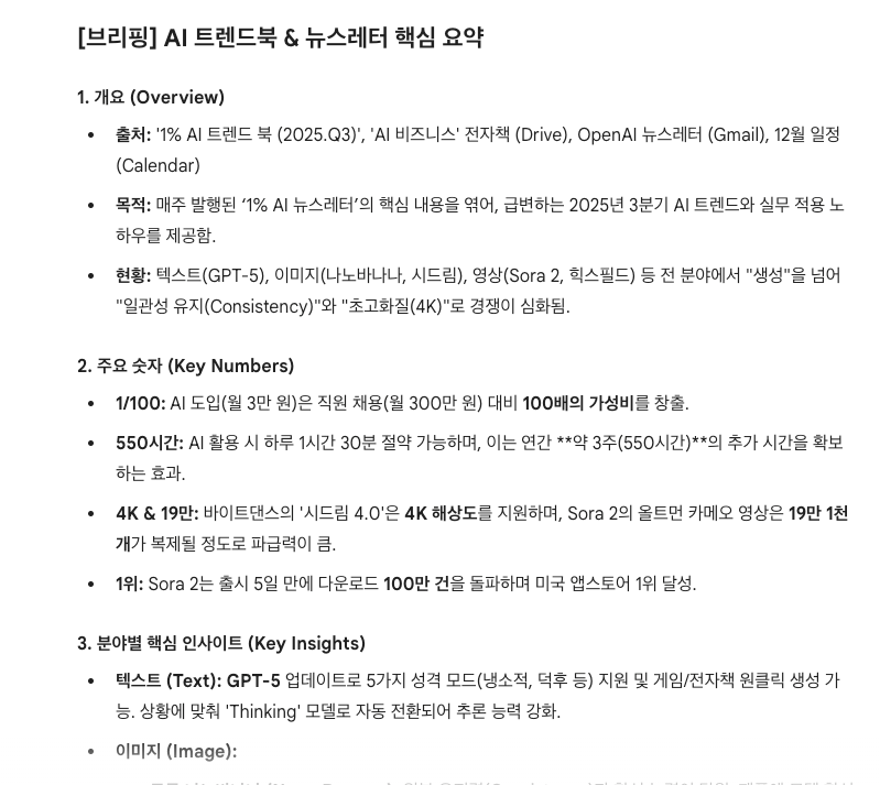 “라사원님! 지금 당장, 뉴스레터랑 AI 트렌드북 관련 자료 요약해서 뽑아주세요”