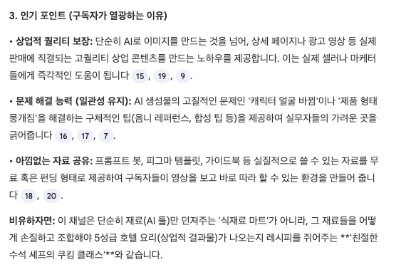 그리고 시청자의 인기 포인트를 정리해달라고 요청했어요.