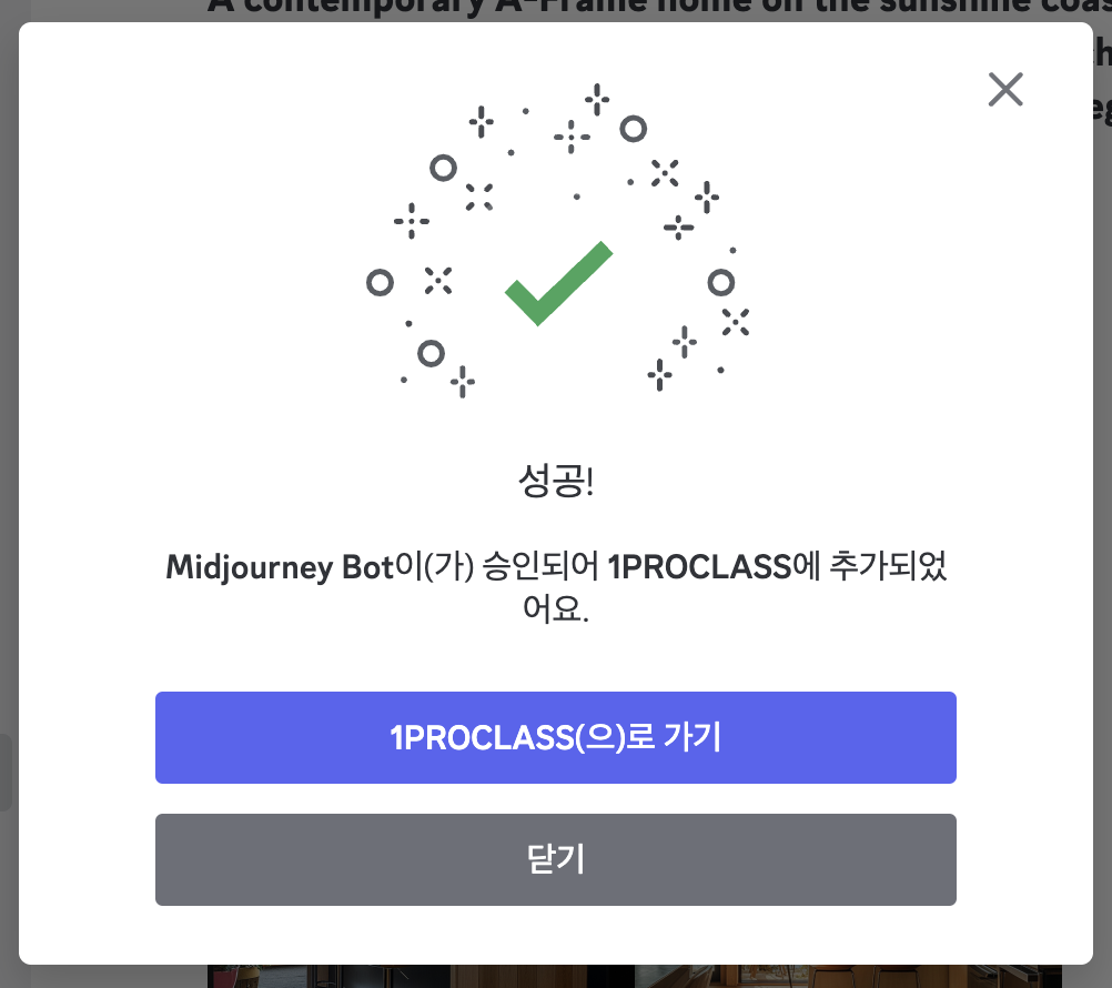 09. 미드저니봇이 내 채널에 무사히 추가되었어요! 내 채널로 가기 버튼을 클릭해주세요.